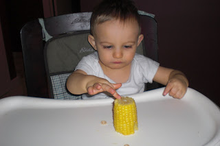 ...here he is eating his "egg-free" waffle for breakfast, made in our new waffle iron. (Thanks Nancy!) In case you are wondering, I substituted 1/3 cup of applesauce for an egg and they turned out great. They actually tasted the same as a 'normal' waffle would. YUM. We'll definitely be having more waffles in the future.